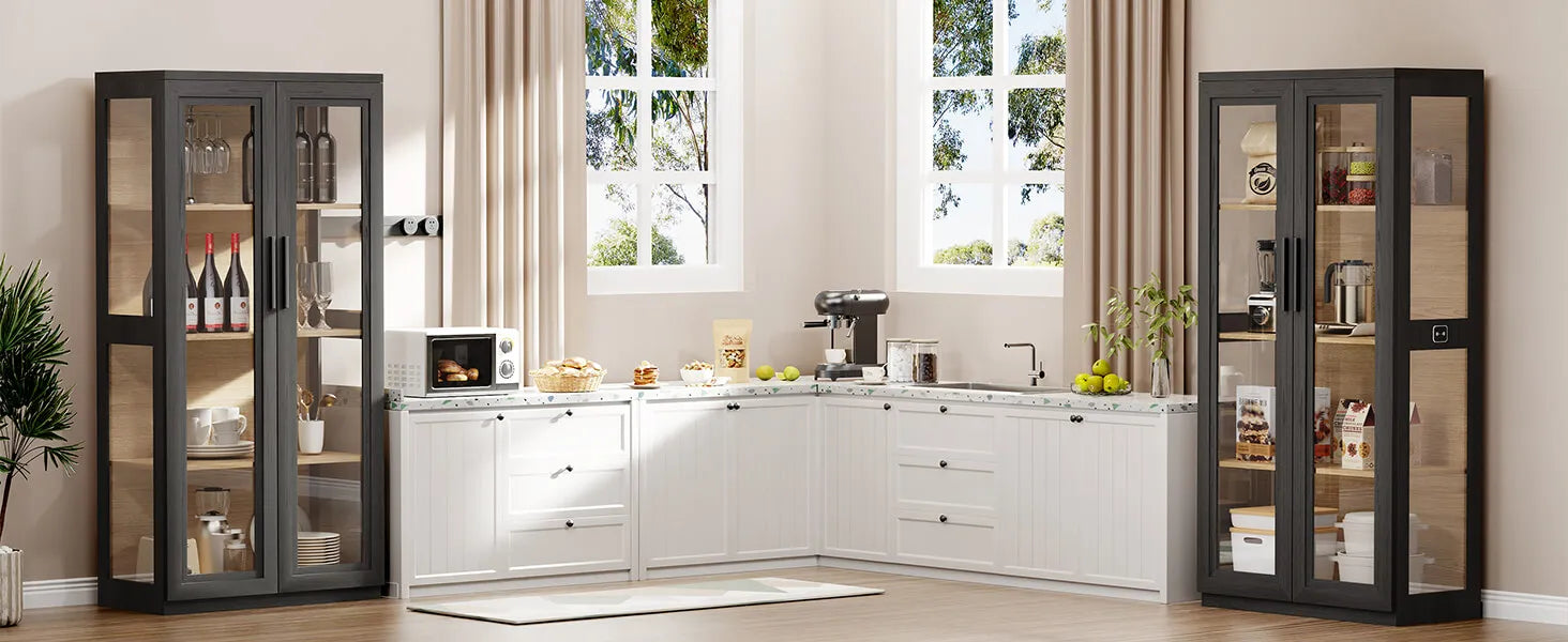 A dual-identity cabinet that secures your collectibles or fine china with equal elegance.