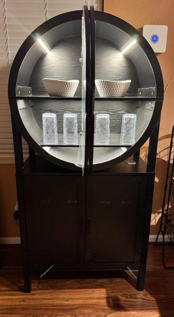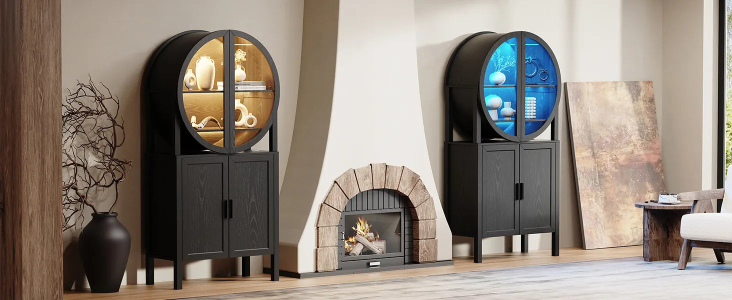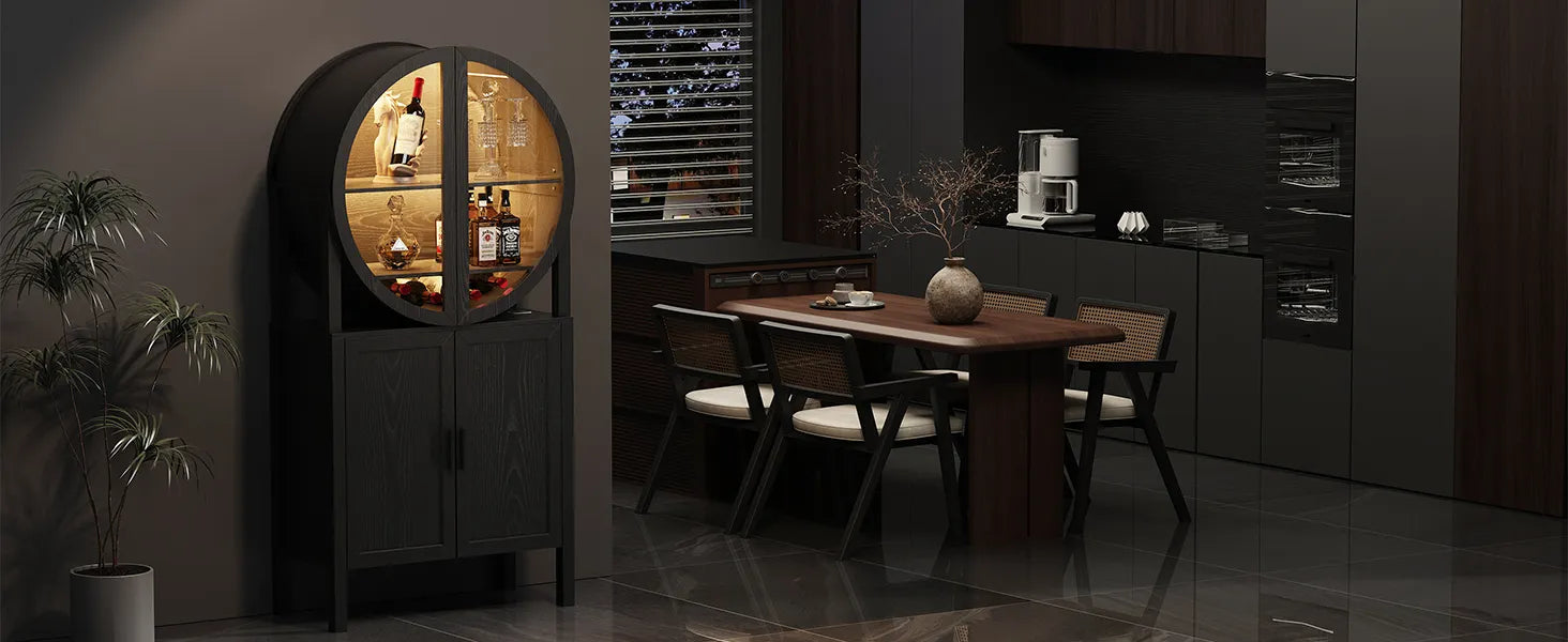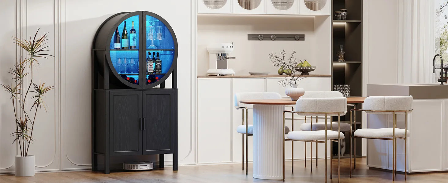 The Motion-Lit Curved Wine Bar Cabinet brings a touch of luxury to everyday hosting.